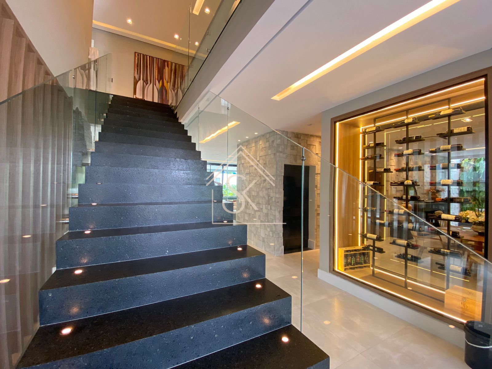 Com uma área construída de 739.5m², essa casa é praticamente uma cidade dentro de outra cidade. E não estou brincando quando dizemos que ela tem de tudo um pouco: aquecimento a gás, churrasqueira, adega, cinema, elevador, energia solar, espaço gourmet, chopeira, fechadura digital, hidromassagem, lareira, SPA e até sauna para relaxar depois de um longo dia de trabalho.